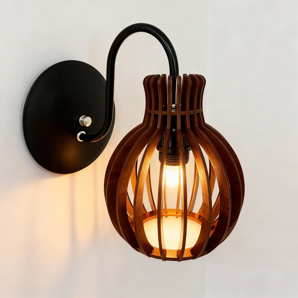 Nossa arandela em madeira premium e aço preto é ideal para quem busca um produto de alta qualidade, resistente e já pronto para instalar.