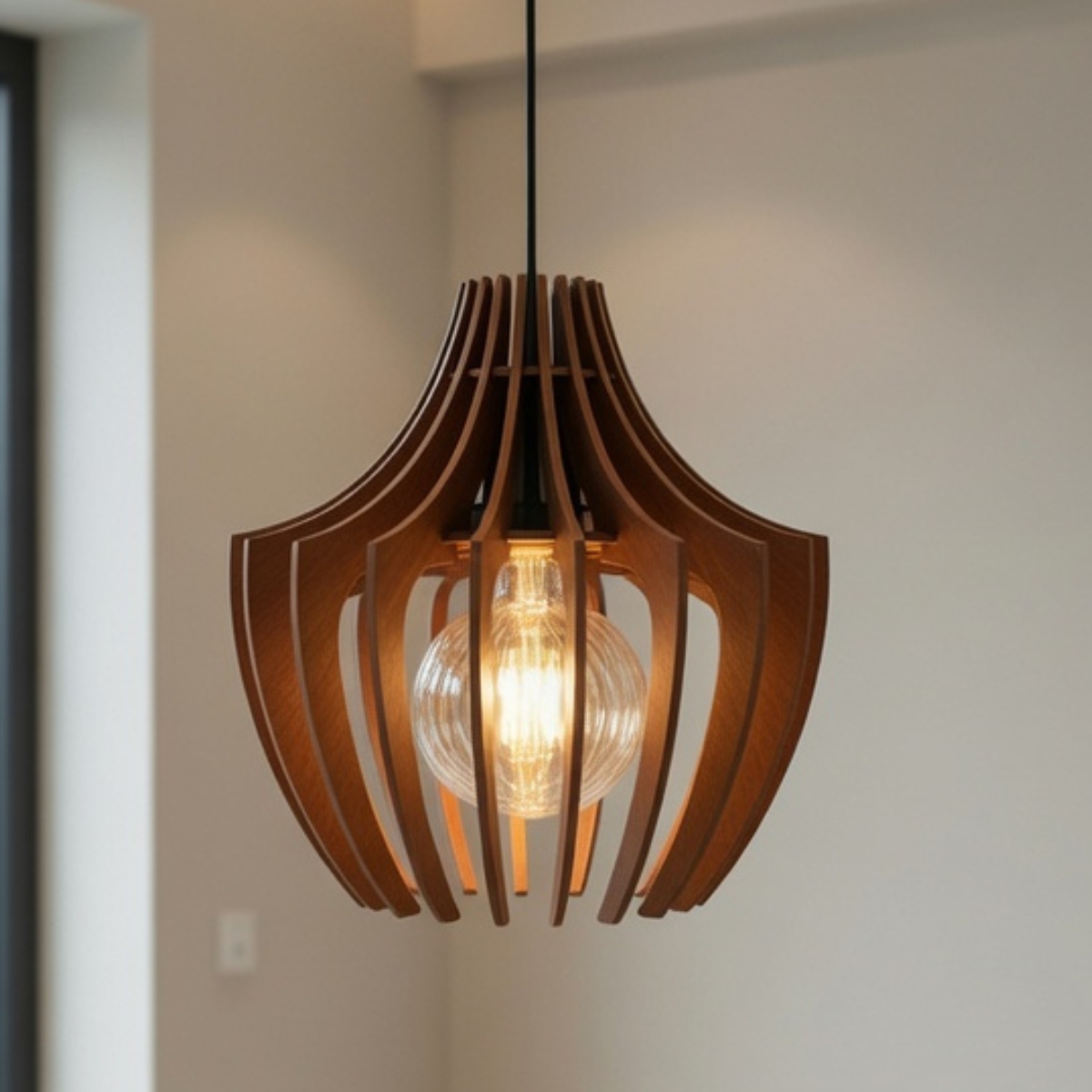 Fabricado com madeira de alta qualidade, cada lustre é único, valorizando os veios e texturas naturais do material. Seu acabamento artesanal garante sofisticação e durabilidade, tornando-o a escolha ideal para quem busca estilo e personalidade na decoração.